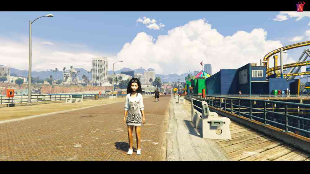 Introducing the FiveM Eloisa Girl Ped, a teenage girl ped with curly black hair, light to medium skin tone, and a stylish white outfit. Perfect for your FiveM custom peds collection.