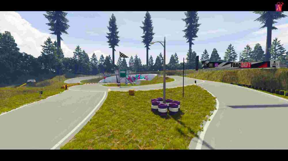 • Natural Scenery: Surrounded by lush pine trees and expansive grasslands, the track offers a scenic, immersive racing environment.